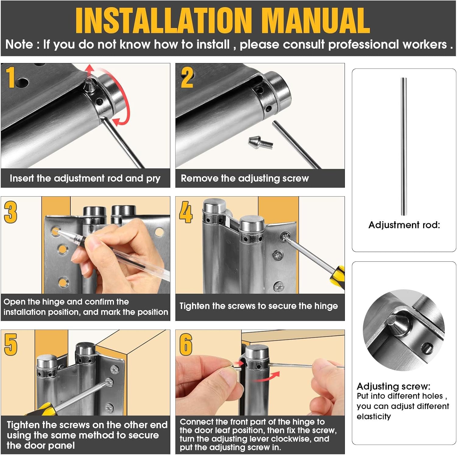 | Included Components | Double Action Spring Hinge, screws |