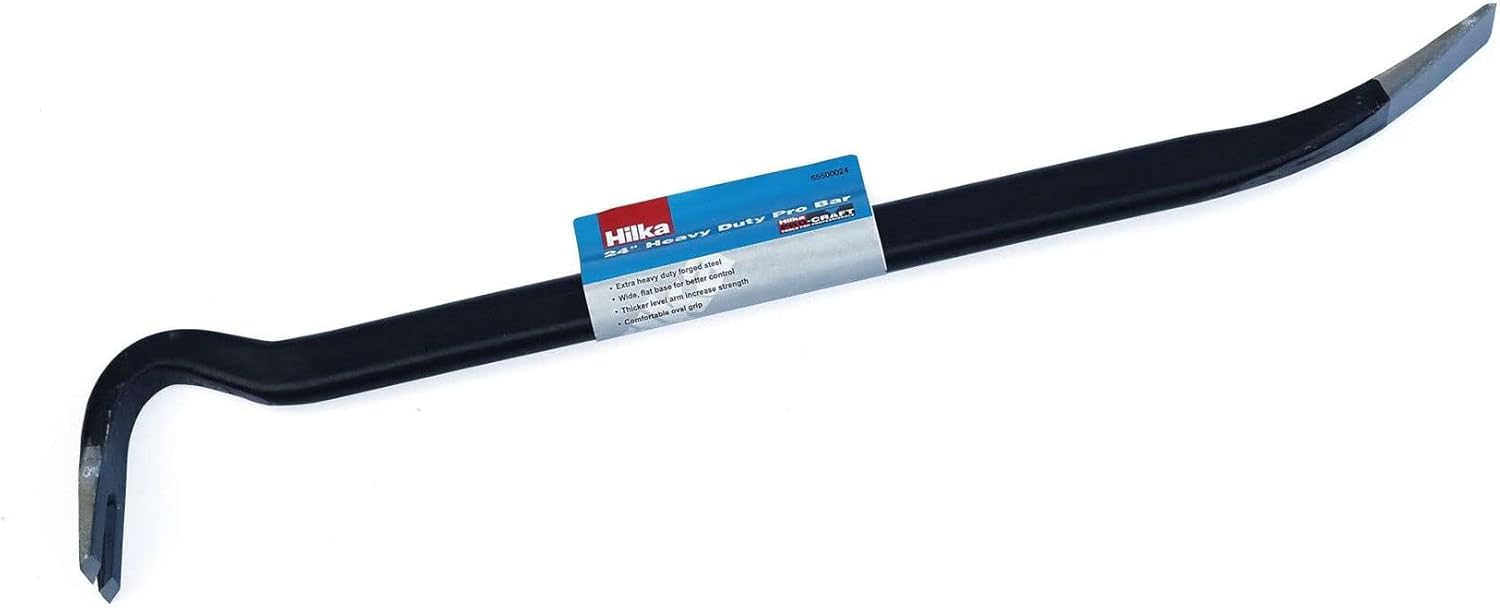 Heavy Duty Pro Wrecking Bar Pro Craft, 18-inch made from quality drop forged steel. The wide flat base gives better control and thicker arm increases strength. Oval grip gives added comfort, supplied with wrap around sleeve.