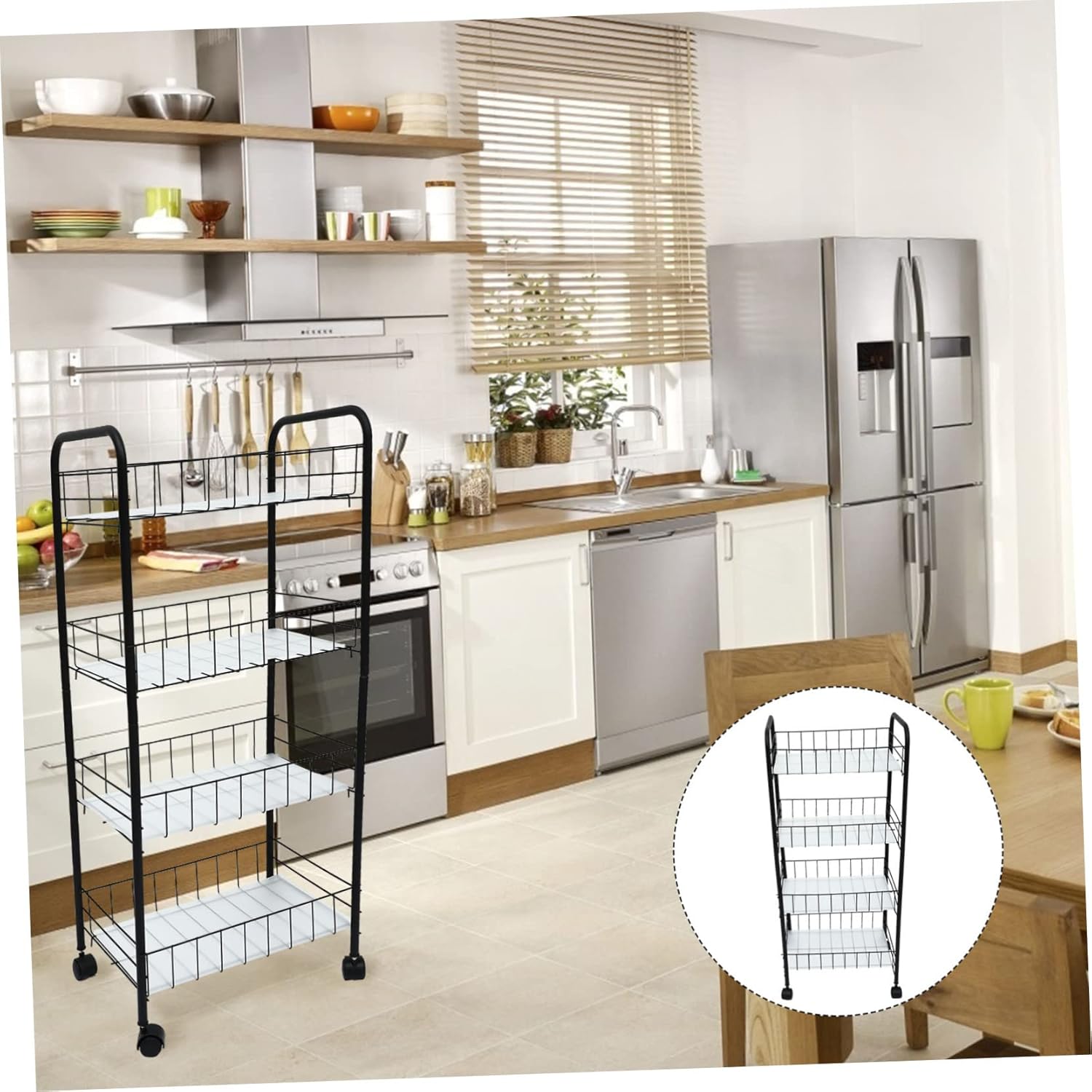 Package Include 1 x Storage Holder Characteristics -Size: 36.50X27.00X84.00cm/ 14.34X10.61X33.01inch Dormitory Mobile Rack -Material: Carbon Steel, ABS and PVC Household Storage Shelf -Color: Black Multi-layer Movable Rack -Made with craftsmanship, it has excellent durability and will not be easily damaged Household Storage Holder. -In addition to helping you store pots, it can also be widely used for storage of other sundries in the kitchen, which is very practical Sundries Storage Rack. -Large capacity and floor type design, more storage, very to meet your needs Dormitory Shelf. -With a simple and low-key appearance design, it can match your kitchen Practical Storage Shelf. -Multi-layer structure, easy to store, save space and provide convenience for you Fruit Storage Shelf.Goods DescriptionBathroom Storage Holder Are you looking for a professional, yet fold shelving? Are you in search of a multifunctional fold shelving that can do multiple jobs at once? , ! Our large capacity must meet your needs.Apartment Movable is one of for you, do not hesitate anymore!