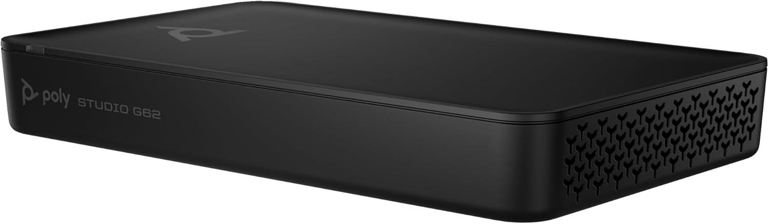 Configurable, powerful, all yoursPoly StudioG62 conferencing system features easy setup, seamless integration, and the customization you need. Powerful collaboration tools? Done.Advanced audiovisual options?Check.Aflexible setup? You got itDesigned to connect.Made to expandTailor every large conference room to your needs.Connect your Poly peripherals and controllers to the Poly StudioG62 video conferencing system and transform spaceswith a modular solution designed for streamlined versatilityCustomize your rooms with confidenceCreate yourideal large room setupwith the Poly StudioG62 video conferencing system. Expand your setup as you see fitwithoutworrying about processing power by adding moreA/Vdevices for a richer,more engaging experienceEasy to install. Easier to connectForget complex installations.With magnetic mounts and powered by PoE+, you can rest easy knowing installation is a breeze. Plus, you can easily manage select 3rd party control systems with robustAPIswhile using the Poly TC10 in the room. Manufacturer: HP Inc. Manufacturer Part Number: 99T09AA#ABA. Brand Name: Poly. Product Line: Studio. Product Series: G. Product Model: G62. Product Name: Studio G62 Video Conferencing System. Product Type: Video Conference Equipment. [Technical Information] ITU-T Recommendation: H.239. SIP. H.323. Features: Echo Cancellation. Automatic Gain Control. Noise Reduction. Room Size: Large. [Video] Graphics Modes (Live): 4K. Graphics Modes (Content): 4K UHD. Maximum Video Resolution (Live): 3840 x 2160. Maximum Video Resolution (Content): 3840 x 2160. Maximum Frame Rate: 60 fps. Video Encoding: H.264 AVC. H.264 High Profile. H.265. H.264 SVC. H.263. [Audio] Audio Encoding: G.719. Siren 22. Siren 14. G.722.1. G.722. G.711. G.728. G.729a. G.722.1C. [Network & Communication] Network Technology: 100/1000Base-T. Ethernet Technology: Gigabit Ethernet. [Wireless Specifications] W