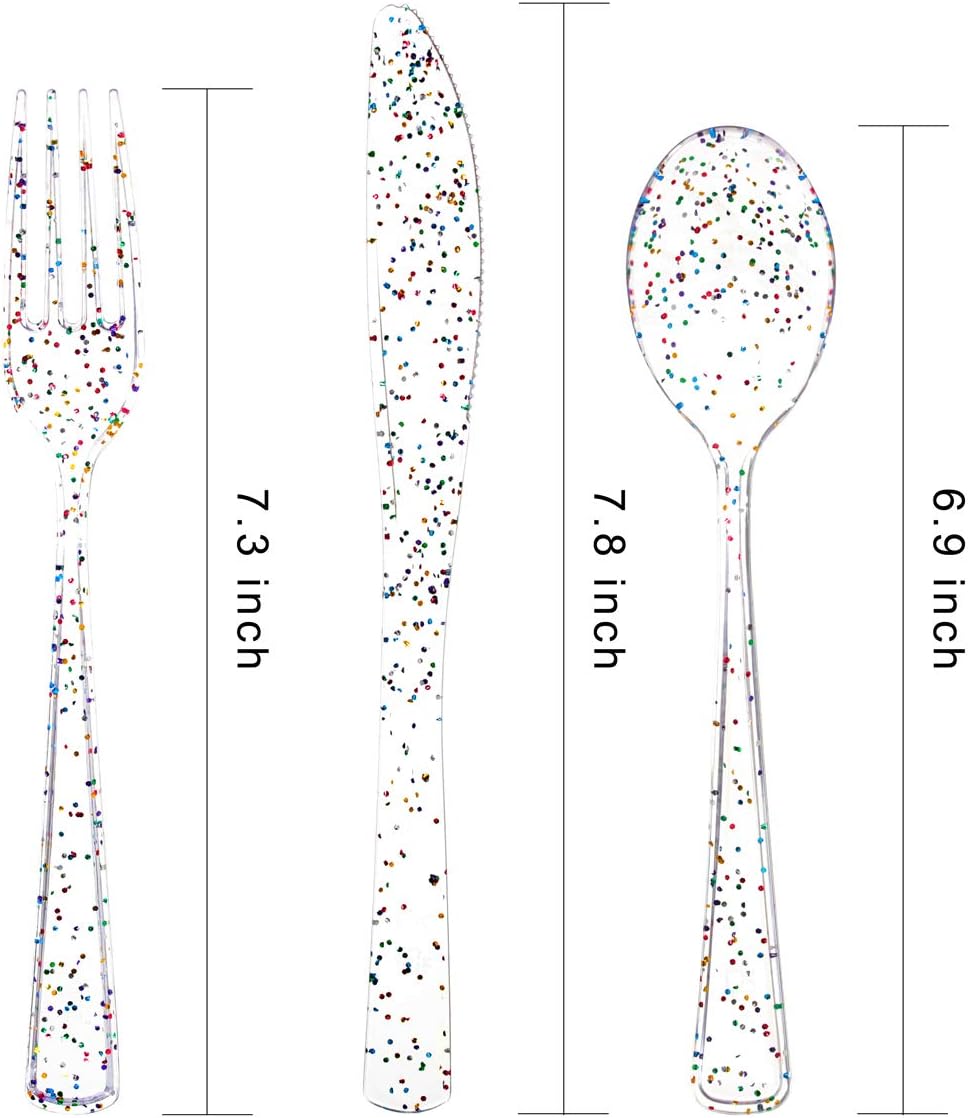 | Color | 360pcs Clear Plastic Silverware with Colorful Design |